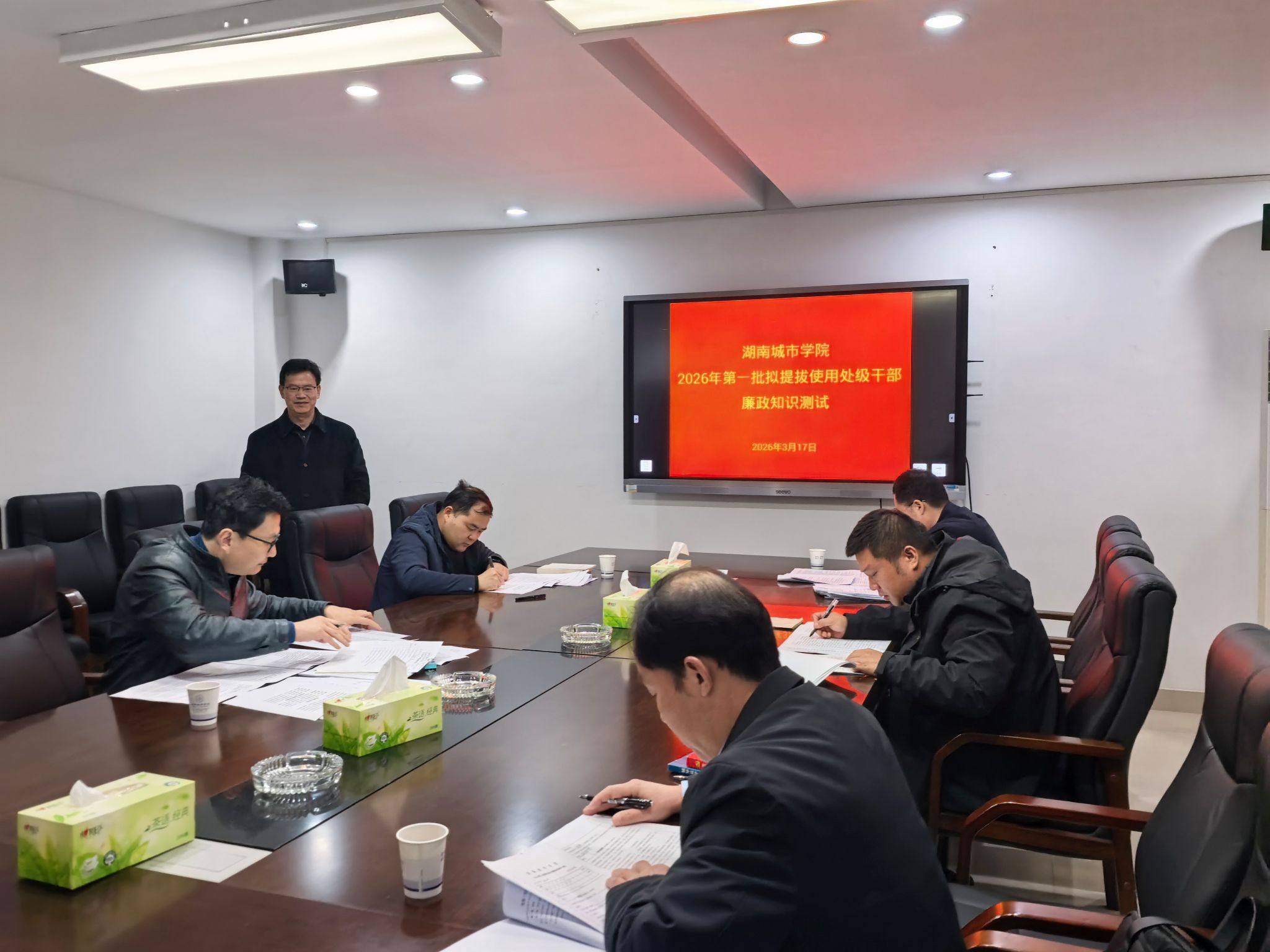 3月17日,学校纪委、党委组织部联合组织开展拟提拔使用处级干部首次廉政知识测试,5名拟提拔使用处级干部参加测试。此次测试在干部任前公示公告期间进行,测试结果将载入干部廉政档案,并作为提出任用建议的重要参考。